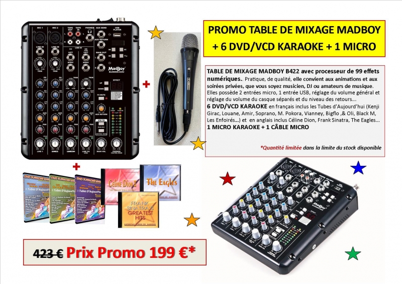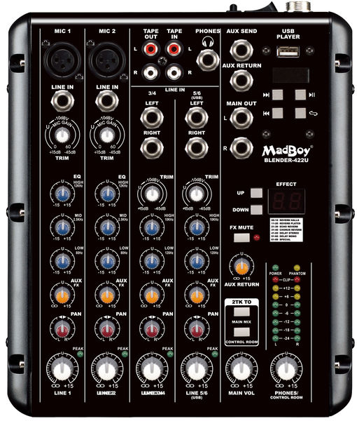 MadBoy blender-422 est une table de mixage pratique de haute qualité qui convient aux animations et aux soirées privées, que vous soyez musicien, DJ ou amateurs de musique.